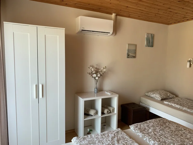 Kedves nyaralni vágyók! A Tom Apartman sok szeretettel várja nagyobb családok, baráti társaságok jelentkezését, Balatonlelle központjától csupán 900 méterre. A 2023-ban felújított szobákkal 6+2 fő részére kínálunk pihenési lehetőséget, csendes, nyugodt környezetben. A déli part egyik legkedveltebb homokos strandjától, a Napfény strand bejáratától 1400 méterre helyezkedik el, szabad strand 600 méterre található. 900 méteres körzetben található élelmiszerbolt, cukrászda, gyógyszertár, vasútállomás, buszmegálló, posta és a Sétáló utca. Az apartman a családi ház emeletén található, privát terasszal és külön bejárattal rendelkezik és az alábbi helyiségekből áll: - 3 hálószoba - nappali - konyha - WC - füdőszoba fürdőkáddal - fürdőszoba tusolóval és WC-vel A tulajdonos a földszinten lakik. Az apartman légkondicionált, televízió (33 csatorna) és korlátlan internet használata biztosított. Az apartman saját terasszal rendelkezik utcára és udvarra néző kilátással. Az udvarban van grillezési lehetőség. Magánparkoló díjmentesen használható a zárt udvarban, max. 2 gépkocsi részére. A fürdőszobában törölközőt (személyenként 1 db fürdőlepedőt és 1 db kistörölközőt), hajszárítót biztosítok a vendégeknek. A konyhában mikrohullámú sütő, kávéfőző, gáztűzhely sütővel, kombinált hűtőszekrény, mosogatógép, edények, poharak, tányérok, evőeszközök, vágódeszka, mosogatószivacs és mosogatószer rendelkezésre állnak. Babaágyat és etetőszéket nem tudok biztosítani. Az apartmanban dohányozni tilos! Sajnos kis kedvenceiket nem tudom fogadni. Főszezonban (2026. 06. 20. -2026. 08. 29. ) min. 5 éjszakás foglalás lehetséges. Elő- és utószezonban min. 3 éjszakás foglalásra van lehetőség. SZÉP kártyával történő fizetés lehetséges. Érkezéskor 50. 000 Ft vagyoni biztosíték fizetendő, ami károkozás hiányában a távozás napján maradéktalanul visszajár. Az árak tartalmazzák a klíma használatot, de nem tartalmazzák az idegenforgalmi adót. Foglalása 30% foglaló befizetésével válik véglegessé. A foglaló összege az érkezést megelőző 30 napon belüli lemondás esetén nem jár vissza. A fennmaradó szállásdíj a helyszínen, érkezeskor fizetendő. A szállás-szolgáltatás igénybevételéről szóló Szerződés meghatározott időtartamra szól. Ha a Vendég a meghatározott időtartam lejárta előtt véglegesen elhagyja a szálláshelyet, a Szolgáltató jogosult a Szerződésben kikötött szolgáltatás teljes ellenértékére. A lejárati idő előtt megüresedett szálláshelyet a Szolgáltató jogosult újra értékesíteni. Nyilvántartási szám: 931/2021 NTAK: MA21002803 Magánszálláshely Üdvözlettel: Boros Mariann és Bukovics Tamás