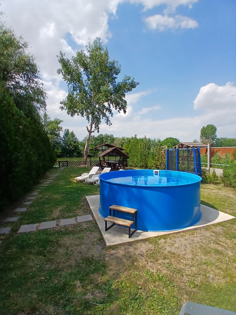 Békésszentandráson a Siratói holtágon Gödrök köze üdülősoron, különálló, közvetlen vízparti horgász vendégházban várjuk a horgászni, pihenni vágyó családokat, baráti társaságokat. A vendégház 12 férőhelyes emeletes, légkondicionált. A házban 1 szoba, galéria 1 fürdőszoba, nappali, konyha-ebédlő. Minden igényt kielégítő, jól felszerelt konyhával (fagyasztóhütő, elektromos fözölap, mikrohullámusütő, vizforraló, kávéfözö, szendvicssütő, edények a fözéshez és étkezéshez) igényesenen berendezett, tiszta vendégházban tölthetnek pár felejthetetlen napot. A vizpart felöl terasz asztattal padokkal. Az udvaron fedett bográcsozó és szalonnasütő a fözéshez és sütögetéshez szükséges felszerelésekkel. Az udvaron a medencében hüssölhetnek a nagy melegben, a gyerekek a kertben felállitott játszótéren tölthetik az időt. Csónak, stég szabadon használható. Horgászás, csónakázás helyben az üdülőnél. Az utca felöl zárt parkolóban parkolhatnak a vendégek. A vendégház téliesitett, elektromos fütéssel. Házi kedvencét nem szeretné otthon hagyni hozható(térités ellenében). Környék látnivalóban bövelkedik. Bövittettük szolgáltatásaink körét Dézsafürdővel ( térités ellenében) kedveskedünk a kedves vendégeknek! Szép kártyát elfogadunk.