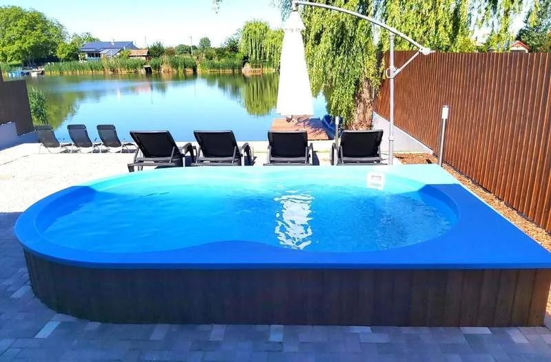 Csodás természeti környezetben fekvő békésszentandrási klímás nyaralónk közvetlenül a vízparton található. Élvezd a napsütést, a vízparti panorámát, a természet felszabadító közelségét modern, teljesen felújított nyaralónkban. A teraszon jakuzzi, az udvaron medence várja a kikapcsolódni vágyókat. Mind stílusában mind felszereltségében egy maximális kényelmet nyújtó egyszintes 2 hálószobás + nappalis, 7 vendég számára tökéletes pihenést nyújtó nyaralót alakítottunk ki 50 m²-en. Az udvaron kényelmes napozóágyakon tudtok napozni, majd csobbanni a 4x2, 5 m-es medencében vagy a fedett teraszon árnyékba vonulni. A teraszon található a jakuzzi is. Gyerekbarát nyaralónk udvarán játszóteret is kialakítottunk és a trambulinon is ugrálhatnak a kicsik. Delfin alakú vízibiciklivel érdemes felfedezni a környéket, a jól úszók a SUP-ot is imádni fogják (szörfdeszka evezővel). Igényes környezet, szabadtéri sütés – főzés lehetősége, bográcsozás, grillezés, tárcsázás, amire egy modern konyhában szükséges lehet, itt mindent megtaláltok. A mosogatógép majd mindent megold. Kicsiknek és nagyoknak is rengeteg programlehetőség kínálkozik a környéken (Szarvasi Arborétum, sétahajózás, vízi színház, Mini Magyarország makettpark, Szentandrási Sörfőzde, Csokikád Kézműves Manufaktúra, állatpark, kastély, történelmi nevezetességek, gyógyfürdő).