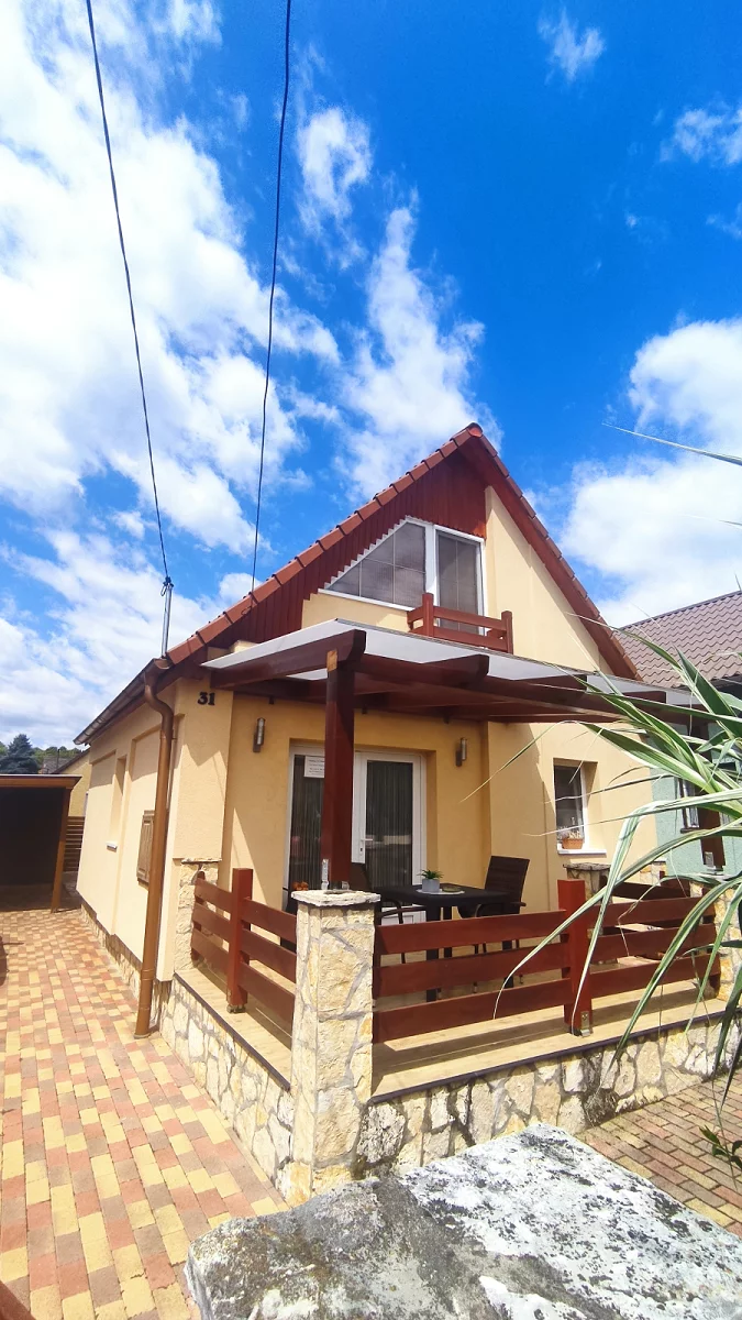 A nyaralóról Kényelmes, hangulatos hétvégi házunk Dombóvár-Gunaras szívében, a Hableány u. 31. szám alatt található – mindössze kb. 20 méterre a fürdő főbejáratától, így ideális választás pihenéshez és feltöltődéshez egész évben. A ház akár 6 fő számára is kényelmes elhelyezést biztosít, téliesített, konvektoros gázfűtéssel és klímával felszerelt, így minden évszakban tökéletes választás. A földszinten egy franciaágyas hálószoba gardróbbal, egy tágas nappali kényelmes ülőgarnitúrával, valamint egy teljesen felszerelt, amerikai konyhás étkező található (hűtő, mikró, gáztűzhely, kávé- és teafőző, kenyérpirító). Itt kapott helyet a zuhanyzós fürdőszoba toalettel is. Az emeleten két további szoba várja a vendégeket: az egyikben franciaágy és heverő, a másikban franciaágy található – ideális családoknak vagy baráti társaságoknak. A ház 2021-ben teljes körű felújításon esett át, így modern, igényes környezetben pihenhetnek vendégeink. A kényelmet 2 televízió, kábel TV, valamint gyors internet és WIFI biztosítja. A rendezett kert kiválóan alkalmas grillezésre, napozásra, a fedett terasz pedig kellemes helyszínt nyújt a kikapcsolódáshoz. Az udvarban fedett, nyitott garázs áll rendelkezésre egy autó számára, de további 2–3 jármű parkolása is megoldott. Tökéletes választás, ha nyugodt, mégis központi elhelyezkedésű szállást keres Gunarason!