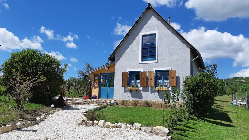 Szeretettel ajánljuk új romantikus stílusú vendégházunkat Pécsely külterületi csendes, de lakott területén. A kertből és a házból csodás kilátás nyílik a környékre, a pincékkel beépített domboldalakra és a távolban megcsillanó Balatonra. Ennél a szállásunknál is az vezérelt bennünket, hogy egy kis eldugott helyet biztosítsunk családoknak, pároknak szolíd baráti társaságnak - ahonnan a balatoni nyüzsgés is könnyen elérhető, de egyáltalán nem kötelező! Annyi szépséggel vár a Balaton-felvidék, hogy akár egy hetes pihenésre is elegendő program tervezhető. A 4-5 fő befogadásra alkalmas vendégház kb 60 m2-es, a földszintjén egy télikert, egy egylégterű konyha-étkező-nappali és egy zuhanyzós fürdőszoba kerül kialakításra, míg az emeleten egy hálószoba kapott helyet. Elő-, utószezonban fűtés, a nyári hónapokra klíma áll vendégeink rendelkezésére.