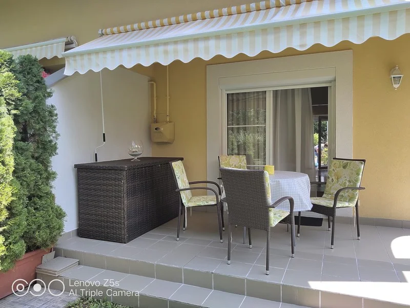Szálláshely típusa: magánszállás Néhány lépésre a strandtól, légkondicionált, modern, jól felszerelt apartman közvetlen kertkapcsolattal. Nappali, étkező és a konyha egy légtérben található, a hálószobából közvetlen a teraszra ill. a kertbe juthatunk. A nappaliban egy kihúzható kanapé szükség esetén, két személy részére kényelmes alvóhelyet biztosít. A konyha teljesen felszerelt, mikró, forraló, kávé főző, villany főzőlap, edények. A nappaliban kábel TV, Wifi. A fürdőszobában mosógép. Teraszon kényelmes kerti bútor, napellenző. A lakás árnyékolását redőnyökkel( + szúnyogháló)is megoldhatjuk. A kertben egy gépkocsi számára zárt parkoló biztosított.